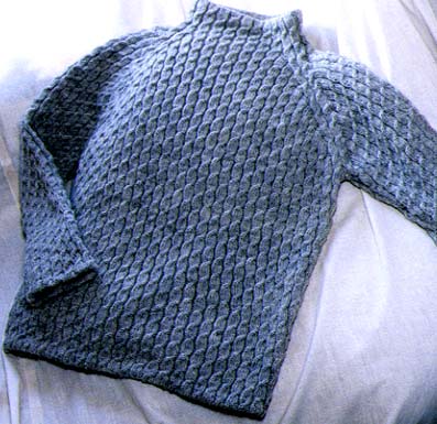細目の糸を使い、総縄編みのシンプルなセーターに仕上げました。