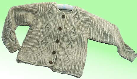 全体をかのこ編みにし、前身頃のみ模様を入れたシンプルなカーディガンです。